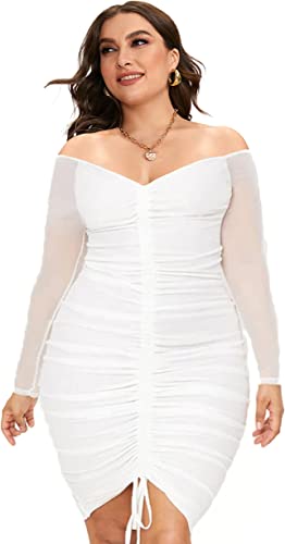 3. Off-shoulder Ruched bodycon mesh dress plus size clothing:
