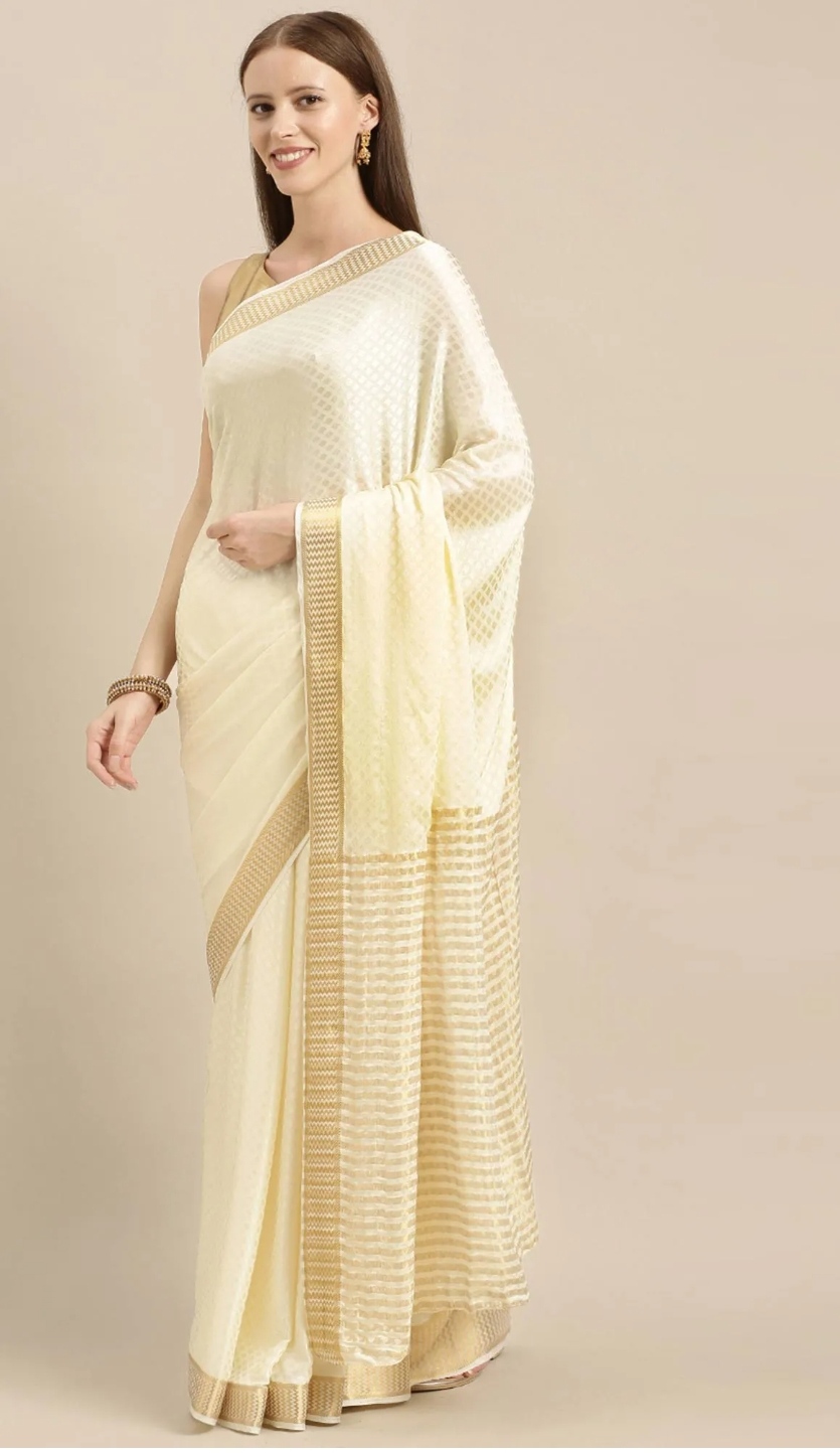 A welcome departure from the otherwise vibrant array of Indian handicrafts, Kasavu sarees can be identified by their off-white colour with thick gold zari borders. In fact, it is the rich zari that is actually referred to as Kasavu.