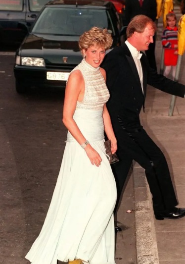 Princess Di’s white gown with a semi-transparent panel was just another daring outing to add to her record of sartorial experiments. Royal tradition mandates modest attire, so she chose sheer materials that may not fit.