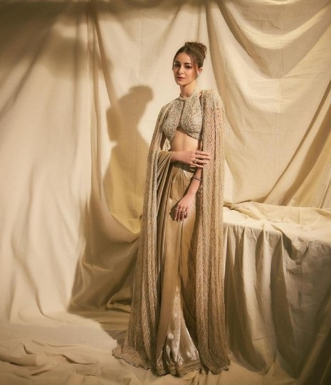 The tone of the event was set by Ananya’s choice of glittering silver gown. Her distinctive floor-length outfit on the green carpet was created by a well-known Indian designer and featured elaborate beading and sequins. The dress was dramatically fitted to accentuate her contours and ended with a little mermaid tail. The bold yet sophisticated combination was completed with a thigh-high split and a plunging neckline.