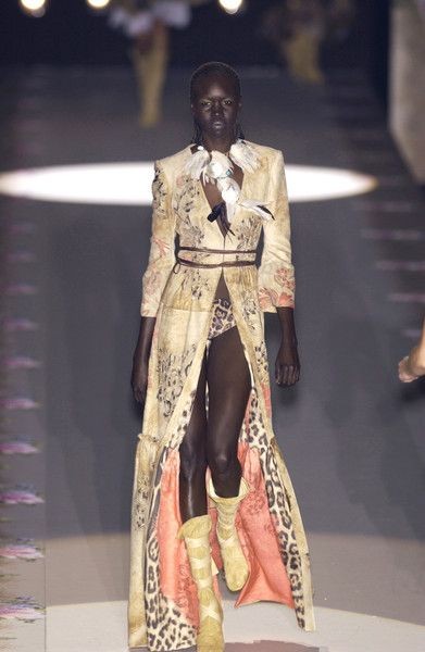 Alek Wek walks the runway at Roberto Cavalli’s Spring/Summer 2002/2003 collection show during Milan Womenswear 2002 Fashion Week. Style Bistro via Pinterest