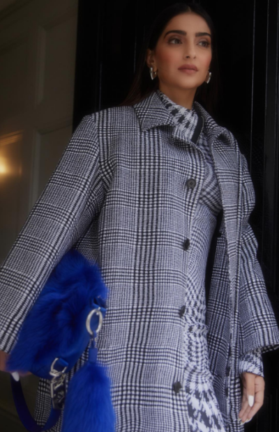 Sonam Kapoor’s checkered print midi dress comes in for those who want to wear a runway-ready dress. Combine them with a knitted woolen trench coat and leggings if you’re going for a high-street style look. Let all steps in your Christmas gathering count.