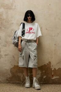 | High-rise loose-fit cargo shorts | Relaxed-fit cotton biker shorts |