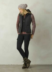 | High-waisted black hiking leggings | Fleece-lined joggers (earth tone) | Dark wash stretch cargo pants |