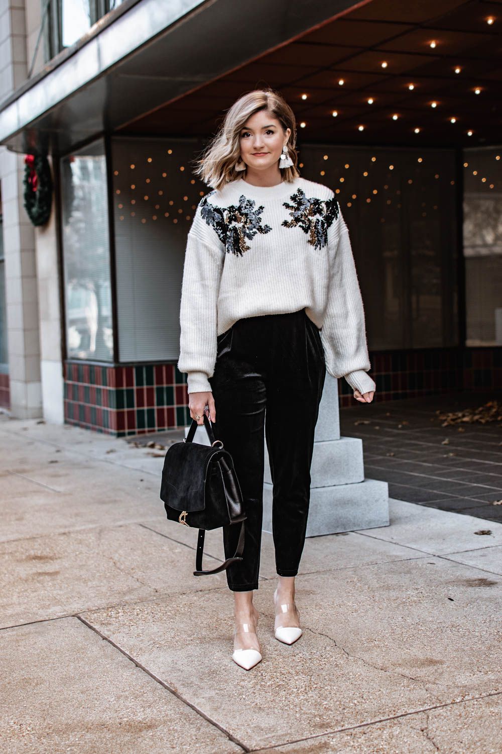 For a casual Christmas party, you can’t go wrong with a cozy sweater. Opt for a classic cable-knit or a stylish Fair Isle pattern in neutral colors like beige or gray. Accessorize with jeans or leggings and a pair of leather boots or ankle booties. For a festive touch, add a sparkly scarf or a statement necklace.