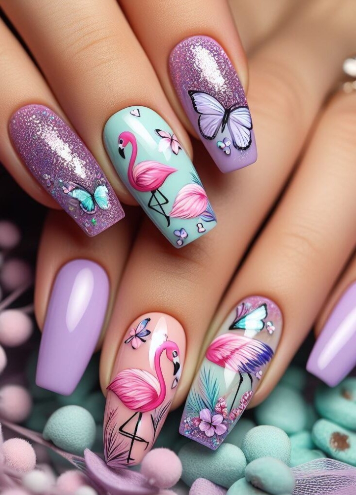 Nail art designs with a whimsical flair are ideal for those who enjoy embracing their fun side. Consider whimsical touches like playful patterns, vibrant gradients, and adorable creatures for your fingertips. These people always make people grin with their manicures because they don’t mind having a little fun with nail art.