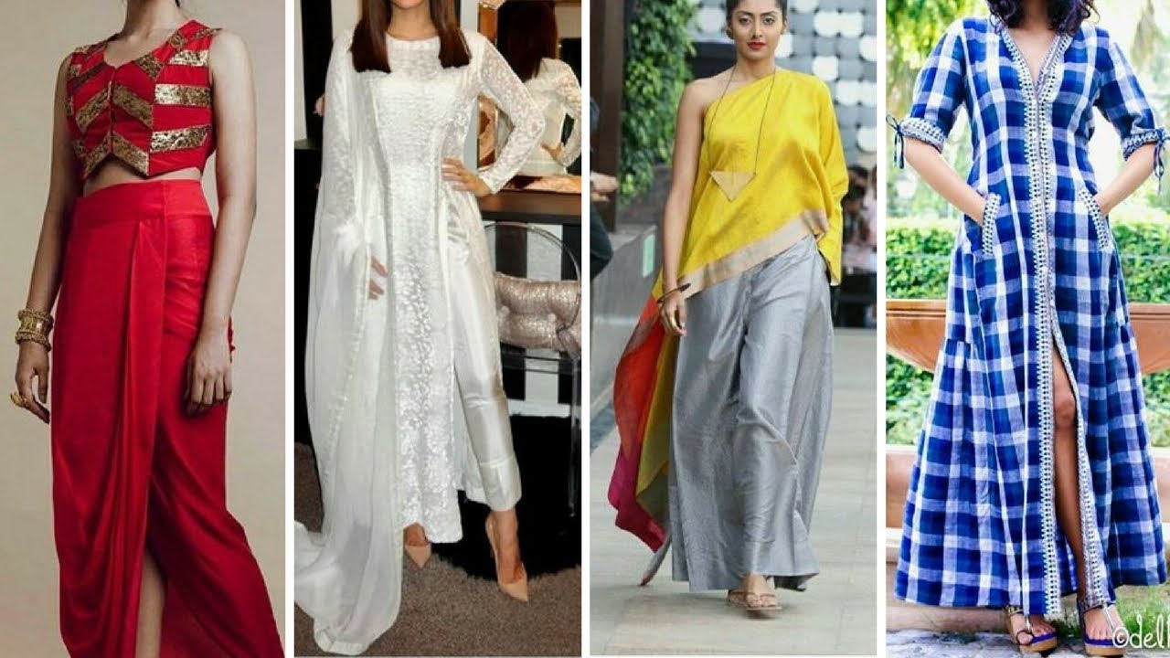 Fusion outfits are always inn because of their unique style. People who want to experiment with something different and new try to wear fusions. A combination of western and eastern cultures turns out to be one of the trends. Long shirts with skinny jeans, peplum the wide legs denim, jumpsuit with long shrugs. Be creative with your ideas while choosing outfits and wear what makes you feel beautiful.