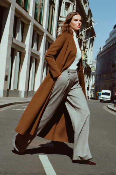 Moreover, the luxurious feel and superior quality of the double-faced wool ensure both comfort and durability. The Mayfair Coat in Dark Camel Double-Faced Wool stands as a beacon of refined fashion, offering a perfect balance of classic design, modern elegance, and enduring sophistication.