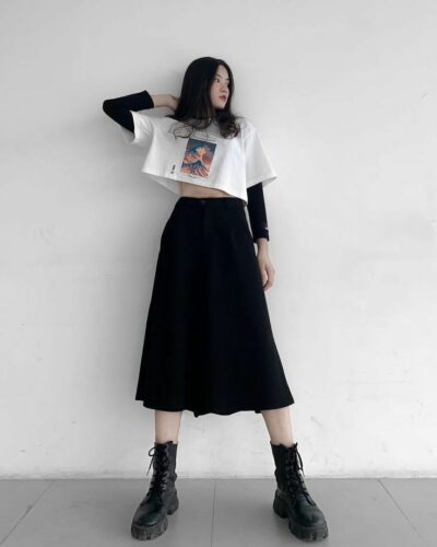 The Cool and Casual black skirt is for individuals who like a comfortable fashion. It’s a chunk flared at the bottom, which makes it distinctive from different skirts. It’s crafted from mild and breathable material, so that you may not feel too hot. Wear it with an easy shirt or sweater for an informal look.