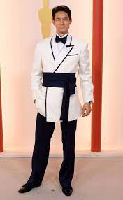 The actor, known for his role in the movie “Everything Everywhere All at Once“, made heads turn in his very unusual ensemble. He sported a stunning Adeam Tuxedo ensemble which consisted of a long white jacket with navy blue trim, paired with navy slacks and a navy silk obi belt.