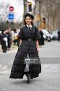 Okay, who else thinks that the wool cloak can be worn like a kimono? Without a belt, of course. I would just pair the black shirt with blue jeans and leave on the black leather boots and the wool cloak. Or pair the wool cloak with black sneakers and a knee-length black gown. I love me some comfort, so, why not, right? Oh and I also love her hairstyle, she looks like a Chinese female character.