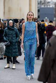 However, she took the street style to another classy level, donning crystal big earrings, a floral grey-green mini dress, and a matching coat before the Giambattista Valli show. She completed her outfit with thigh-high black boots. The American socialite had on a combination of different colors that were said to be trendy this year: the top six exclusive 2023 fashion trends.
