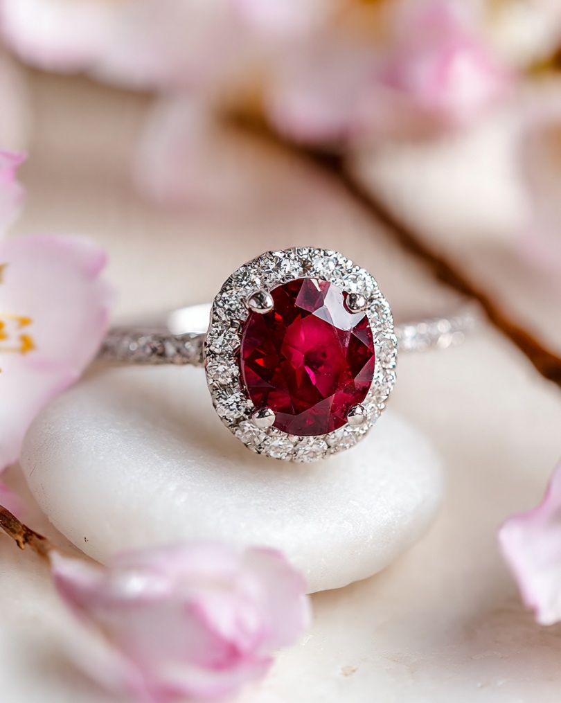 To wear for everyday dress, pick simple ruby rings with an elegant style. An oval-shaped or a round ruby ring in rose gold or gold looks stunning with classic and contemporary clothes.