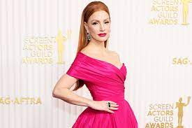 The star wore a voluminous raspberry-rose taffeta dress with a high slit. Her dress had an asymmetrical bodice and a full skirt that looked like it was cascading down her body. Chastain completed her look with sleek, straight hair and glittering statement earrings accented with pink gems. Besides the fact that Chastain always slays the SAG Awards, her outfit tells us that getting glammed up is a form of expression for women. Whenever I look at Jessica, the word power fashionista comes to mind. It’s true because she’s got skills and still looks so good.