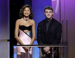 After her red carpet session, came the time to present an award alongside Paul Mescal. Zendaya changed her outfit from her couture dress to a slinky strapless number from Giorgio Armani Privé. The new dress had a cutout panel under the bust, which she showed off for the rest of the event. Her dress wasn’t the only thing that made a statement. She also served us with 1960 voluminous hair styled to a half part.