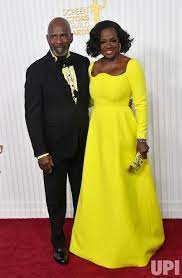 Viola donned a long-sleeved, bright yellow dress featuring a full skirt and curved neckline. Julius doesn’t stray too far from his wife as he subtly compliments her outfit. Wearing a black suit with a black bow tie paired with a pale yellow and black shirt, the couple gives us the vibes of a true power couple.