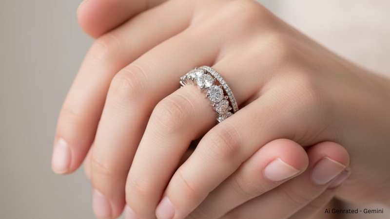 Diamond Wedding Rings for women include many setting options such as pavé, bezel, channel, or shared prong setting, adding brilliance and highlighting the engagement ring.