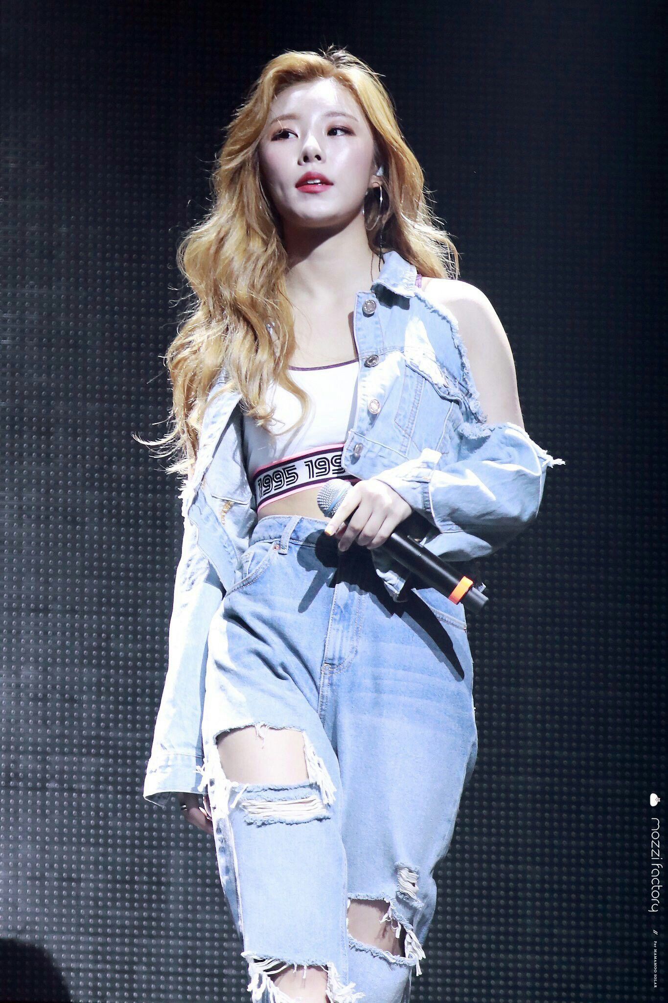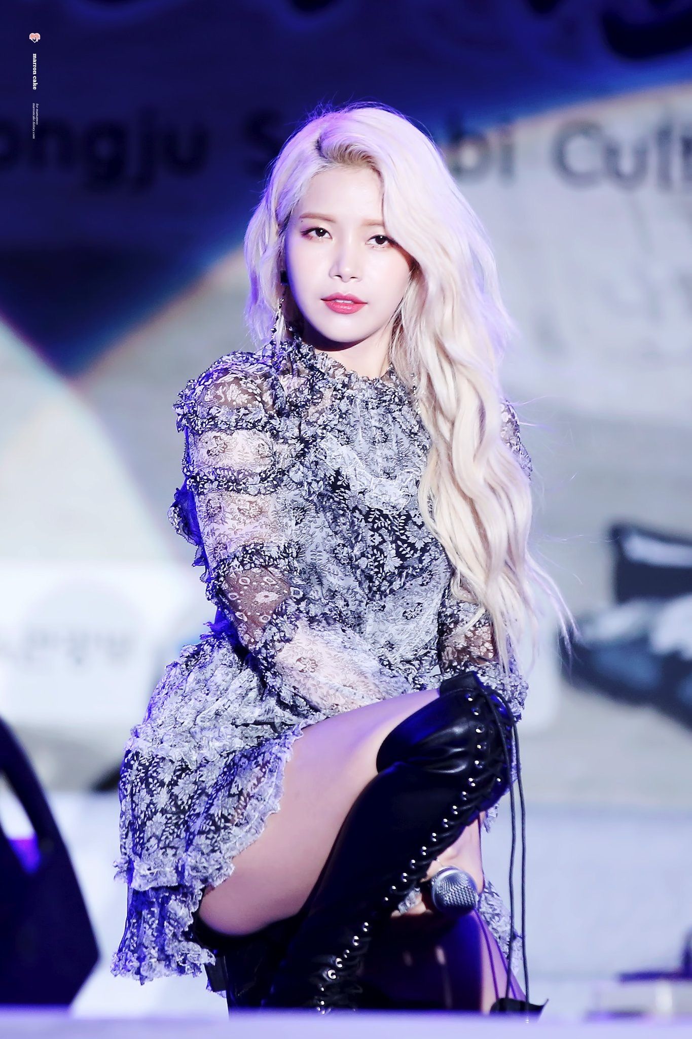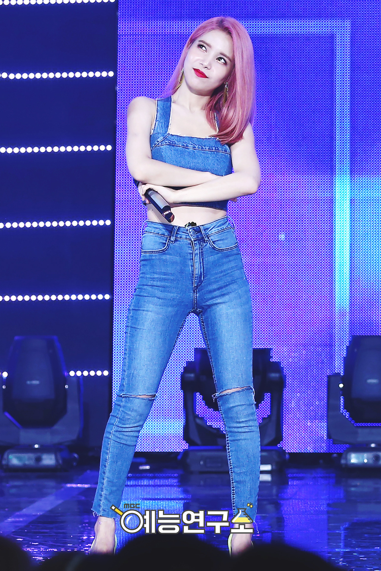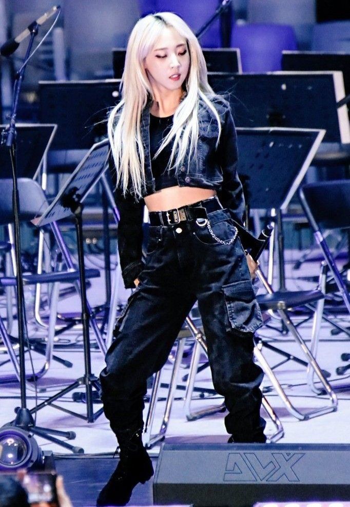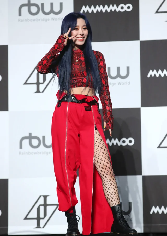 Solar whose real name is Kim Yong-sun, is the leader of Mamamoo. Her style is very diverse. Sometimes she wears a lot of colorful pieces, other times she wears a lot of black outfits. She also wears a lot of crop tops, Knee-high boots, pants, and baggy outfits. Her style is a great mix between “girly-girl” and “tomboy”.