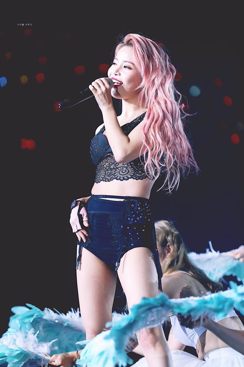 Out of all members, I believe that Hwasa has the most unique, peculiar yet innovative style. She seems to love denim, leather, and leopard print clothing a lot. She has often been judged in the early parts of her career because it was believed that she did not have the idol image and was often criticized for having hips and not being skinny enough. This is something that I have always disagreed with. Contrastingly, I believe that Hwasa’s shape is perfect and it suits all her outfits well and her iconic style. All her looks are bold, fierce, and strong just like her personality.