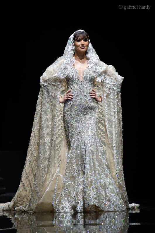 Hany El Behairy Gown was created for weddings by Hany El Behairy in 2019. It’s a white gem-glittered gown fully attached to the body and a great brown flow in the lower part. It contains many diamonds and the highest price of gemstones. The expensive price of this wedding gown is $13 million.