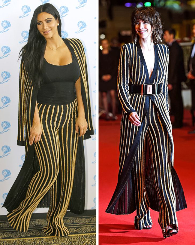 This year’s Cannes Film Festival showed Sophie Marceau as one of the best-dressed women. Kim Kardashian wore this striped Balmain two-piece autumn 2015 ensemble to the Sudler Forum during the Cannes Lions International Festival of Creativity as one of her multiple looks. Some might vote against Kim only because she is Kim, but I would vote for Sophie since her trousers are not sagging on the floor as well as because the way she accessorized the style adds to the elegant look.
